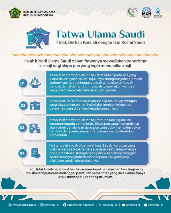 Dirinya juga mengingatkan para jemaaj untuk mematuhi peraturan dan tata tertib yang telah ditetapkan oleh pihak yang berwenang di Tanah Suci.