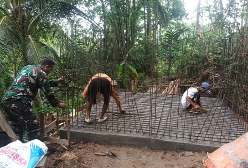 Suasana gotong royong tampak kental di lokasi pembangunan. Para anggota TNI bersama petani bahu-membahu membangun rumah pompa sebagai bagian dari instalasi irigasi yang akan menyalurkan air dari sumber terdekat menuju lahan pertanian. Kegiatan tersebut mencerminkan kemanunggalan TNI dan rakyat yang menjadi ciri khas dalam setiap kegiatan pembangunan di daerah.