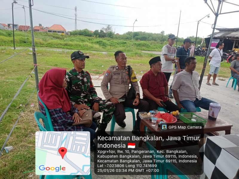 BANGKALAN, WARTA PERTIWI – Babinsa Kelurahan Pangeranan Koramil 0829-01/Kota, Serka Mustakim, bersama Lurah Pangeranan dan Bhabinkamtibmas melaksanakan monitoring dan pemantauan kegiatan pemilihan Ketua RW 09 Wisma Pangeranan Asri, Minggu (25/1/26). Kegiatan tersebut digelar seiring berakhirnya masa bakti Ketua RW sebelumnya.
