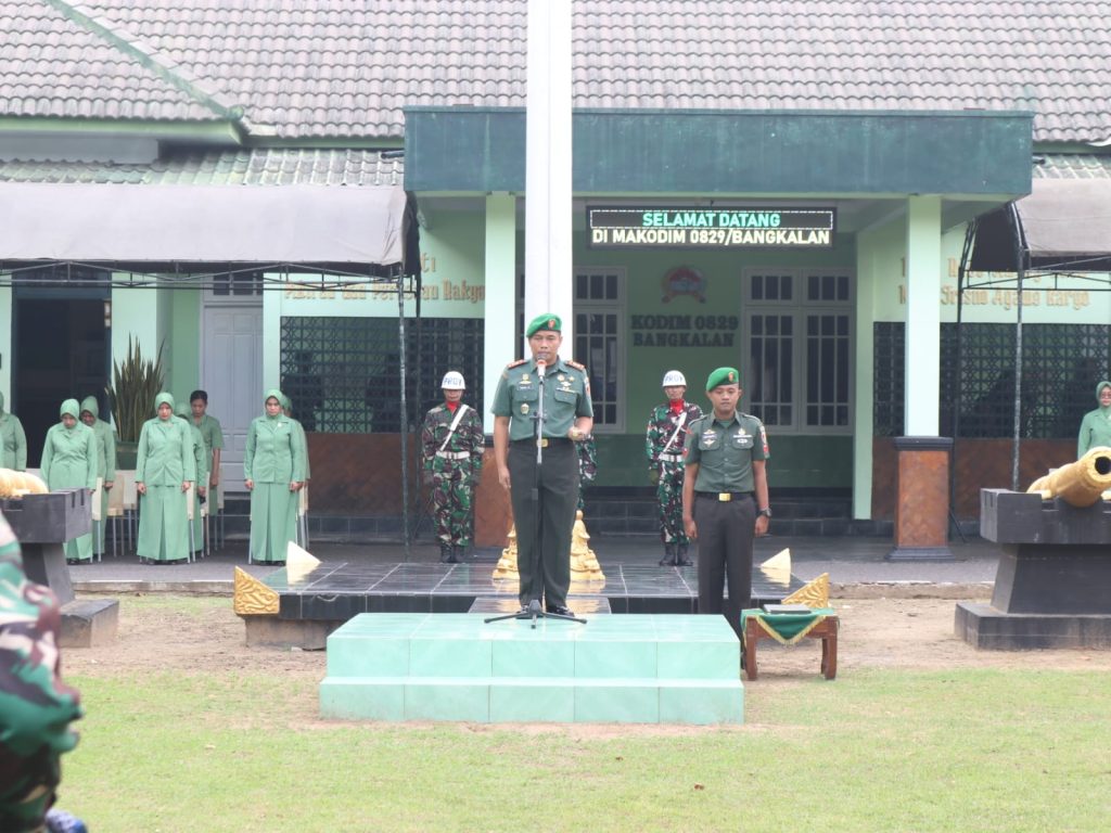 WARTA PERTIWI.COM, BANGKALAN –Komandan Kodim 0829/Bangkalan Letkol Inf Nanang Fahrur Rozi, S. Pd., memimpin upacara kenaikan pangkat 19 prajurit terdiri dari 2 Perwira, 12 Bintara dan 5 orang Tamtama, bertempat di lapangan Makodim Jalan Letnan Abdullah, Kelurahan Keraton, Kecamatan Bangkalan, Kabupaten Bangkalan. Senin (01/04/2024)