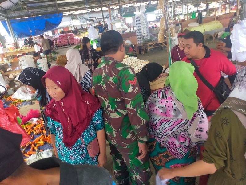 Lebih lanjut, sambil bersenda gurau dengan para penjual, Babinsa menanyakan berbagai harga kebutuhan pokok baik itu minyak goreng, beras, gula, daging, ayam, bumbu dapur serta kebutuhan lainnya.