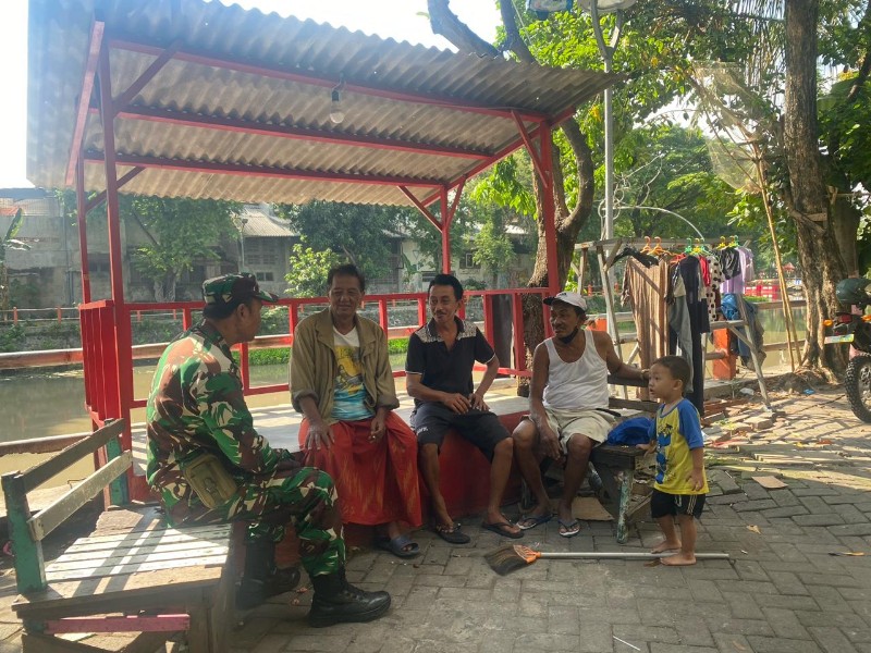 WARTA PERTIWI.COM, SURABAYA – Guna mewujudkan kemanunggalan TNI dengan rakyat, Babinsa Alun-alun Contong Koramil 0830/04 Bubutan Sertu Suwarno melakukan kegiatan komunikasi sosial anjangsana dengan bapak Suratin selaku Ketua RW 03 Gembongan untuk pererat tali silaturahmi, Senin (15/4).