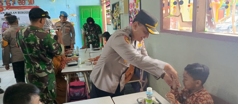 WARTA PERTIWI.COM, GRESIK – Mendukung program Asta Cita Presiden Prabowo Subianto, Polres Gresik menggelar kegiatan Makan Bergizi Gratis (MBG) bagi siswa UPT SDN 229 Gresik, yang berlokasi di Dusun Bibis, Desa Beton, Kecamatan Menganti, Kabupaten Gresik. Kamis (13/02/2025).