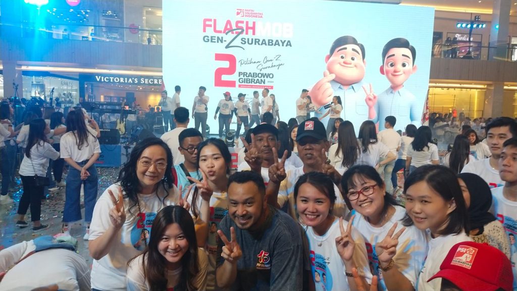 WARTA PERTIWI.COM, SURABAYA – Gen Z Partai Solidaritas Indonesia (PSI) di Surabaya punya cara unik untuk mengkampanyekan calon presiden dan wakil presiden nomor urut 2 Prabowo Subianto-Gibran Rakabumning Raka.