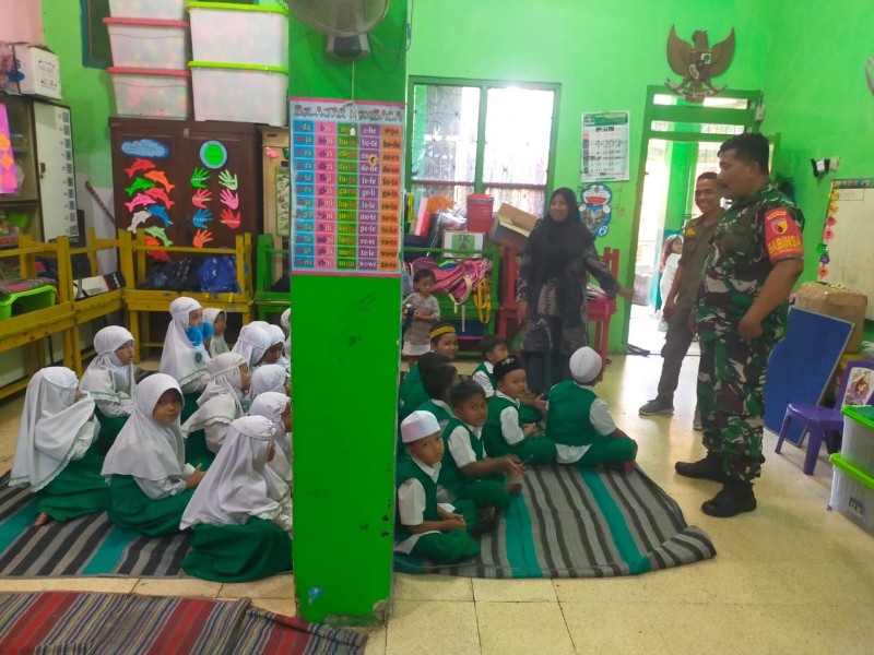 WARTA PERTIWI.COM, SURABAYA – Bertempat di TK AL AZIEZ RW 08 di Jl. Semut Gg. 4 No.15-17 Kel. Bongkaran Kecamatan Pabean Cantian, Babinsa Bongkaran Koramil 0830/03 Pabean Cantian Koptu Moch Sholeh sambangi sekolah TK Al Aziez sekaligus berkomunikasi sosial dengan guru dan murid, Kamis (13/6).