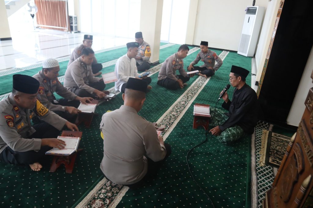 Acara diawali dengan pembacaan ayat suci Al-Qur’an oleh AKBP Adhitya Panji Anom, dilanjutkan dengan tadarus bersama oleh seluruh personel yang hadir.