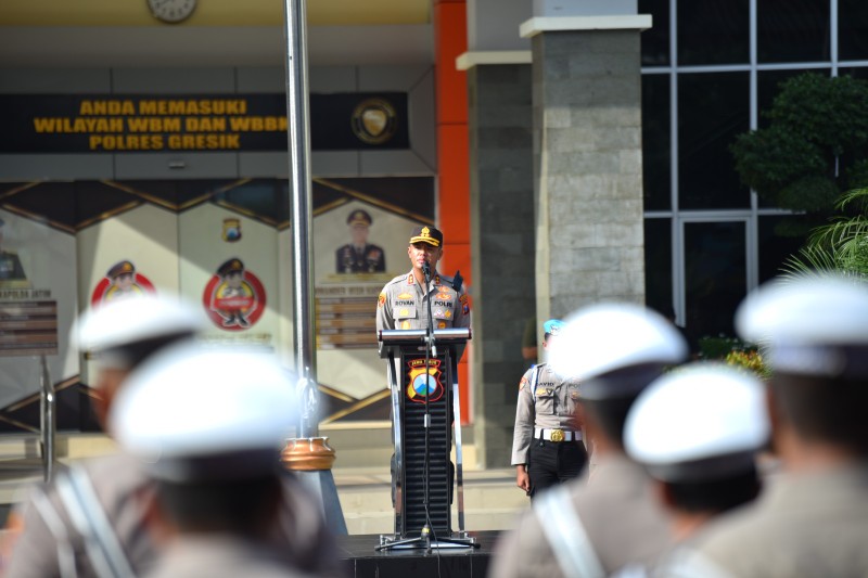 Hal ini disampaikan saat ia memimpin apel pagi yang diikuti seluruh personel Polres Gresik, baik anggota Polri maupun ASN, di halaman Mapolres Gresik, Senin (19/5/2025) pagi.