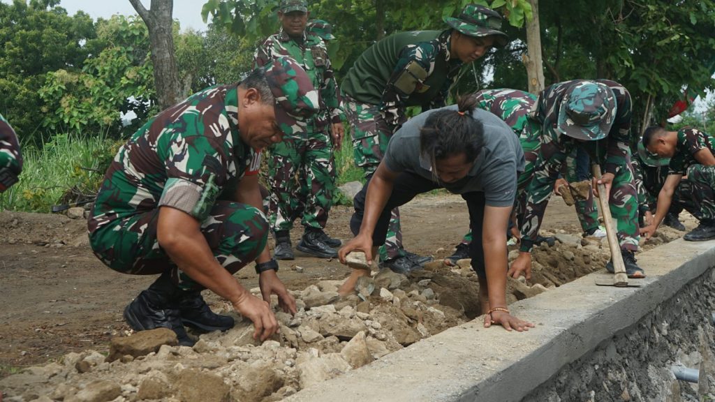 Di lokasi, Dansatgas TMMD Letkol Inf Ahmad Saleh Rahanar, S.Sos. menyapa dan membuka perbincangan dengan warga setempat. Beliau merangkul dan memberikan semangat untuk kesuksesan program TMMD Ke-199 ini. Terjun langsung membantu dalam proses pembangunan Plengsengan TPT dengan harapan mendorong dan menggugah semangat para Anggota Satgas TMMD bersama seluruh warga desa, guna percepatan pembangunan wilayah untuk mewujudkan kesejahteraan rakyat.