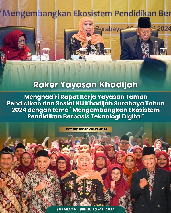Di kesempatan ini, Khofifah mendorong seluruh sekolah di bawah Yayasan Taman Pendidikan Khadijah untuk fokus melakukan pengembangan ekosistem pendidikan berbasis teknologi digital.