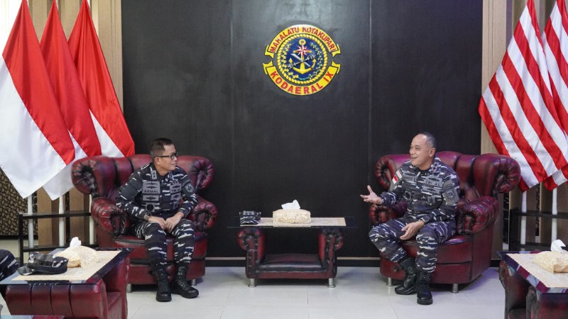 Dalam menerima tamunya tersebut, Dankodaeral lX didampingi Wadan Kodaeral lX Laksma TNl Dr. Muhammad Risahdi, para Pejabat Utama dan jajaran Kepala Satuan Kerja Kodaeral lX.
