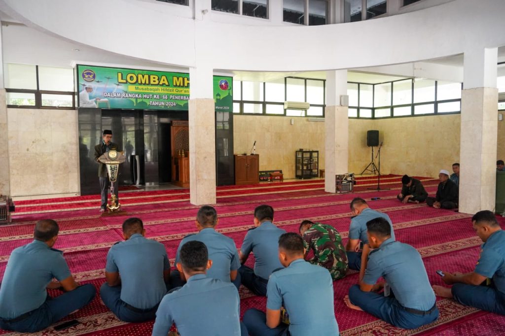 WARTA PERTIWI.COM, SIDOARJO – Perwira pertama dari Wing Udara 2 Puspenerbal Juanda, Lettu Laut (T) Sukadi keluar sebagai juara 1 pada Lomba MHQ (Musabaqoh Hifdzil Qur’an) Juz ke-30 dalam rangka HUT ke-68 Penerbangan TNl AL tahun 2024 yang digelar di Mesjid Ass Syuhada, Lanudal Juanda, Kamis (28/3/2024).