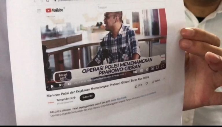 Pelaporan tersebut dilakukan atas unggahan YouTube berjudul “Manuver Polisi dan Kejaksaan Memenangkan Prabowo-Gibran” pada 2 Desember 2023.