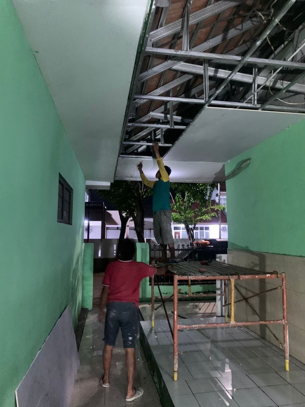 Hari ini kami sedang melakukan perbaikan di lokasi yang mengalami kerusakan diantaranya, plafon kamar mandi, kusen, lampu dan lain – lain.