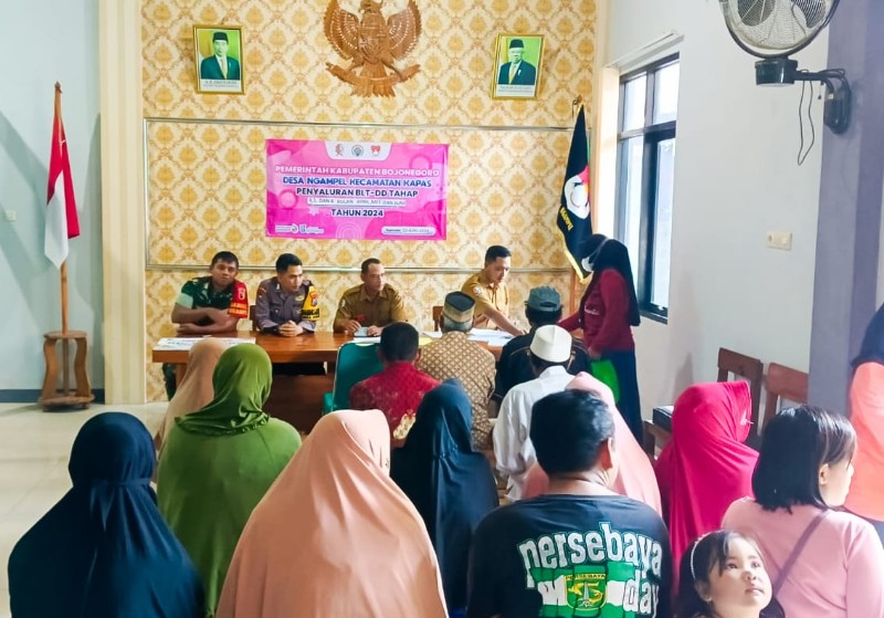 WARTA PERTIWI.COM, BOJONEGORO – Bintara Pembina Desa atau Babinsa Koramil 02/Kapas Kodim 0813 Bojonegoro, Serma Supriyanto, melaksanakan pendampingan kegiatan penyaluran Bantuan Langsung Tunai Dana Desa (BLT-DD) Tahap II tahun 2024 di Balai Desa Ngampel Kecamatan Kapas Kabupaten Bojonegoro Jawa Timur, Senin (10/6/2024).
