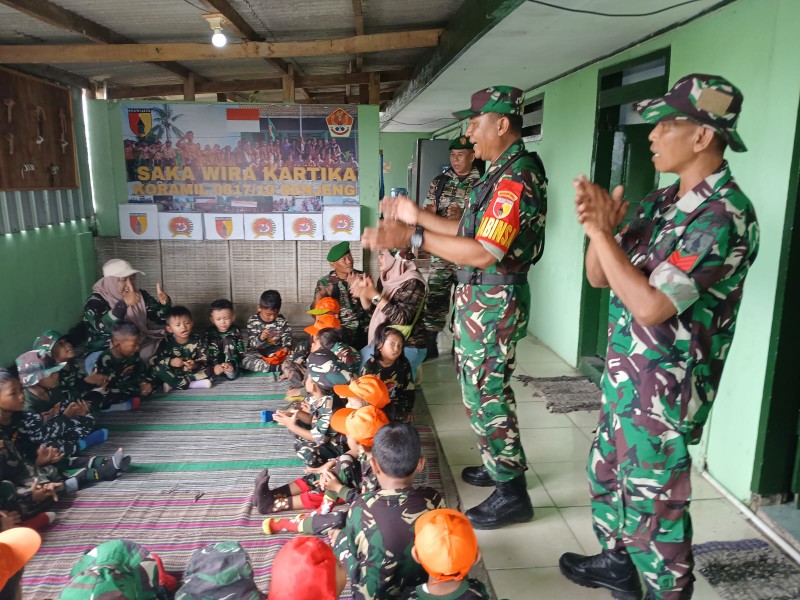 Gresik, Warta Pertiwi – Dalam rangka memperkuat pembinaan karakter sejak usia dini, Koramil 0817/10 Benjeng menggelar kegiatan pembinaan karakter bagi anak-anak Taman Kanak-Kanak (TK) Darma Wanita Desa Bulang Kulon, Jumat (12/12/2025). Kegiatan edukatif ini berlangsung penuh keceriaan di aula Koramil Benjeng.