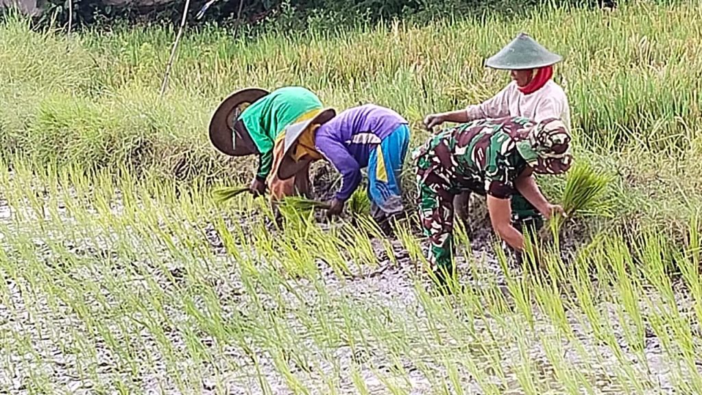 Babinsa sebagai pembina desa turun ke sawah untuk membantu para petani dengan harapan dapat memberikan motivasi dan nilai positif bagi petani agar lebih bersemangat dalam bekerja mengolah lahan pertanian guna meningkatkan ketahanan pangan di wilayah.