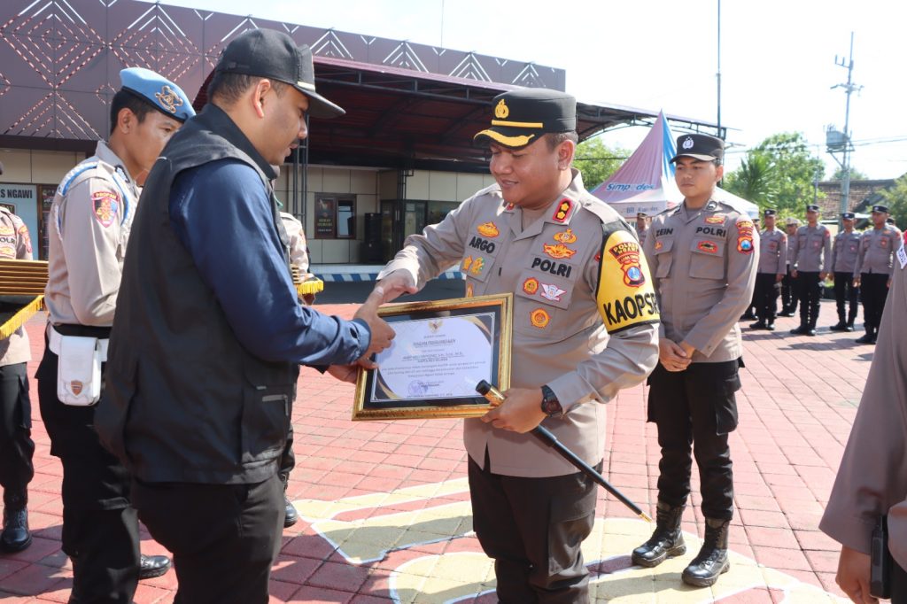 WARTA PERTIWI.COM, NGAWI – Bupati Ngawi H Ony Anwar Harsono mengapresiasi kinerja Polri khususnya Polres Ngawi dengan memberi piagam penghargaan.