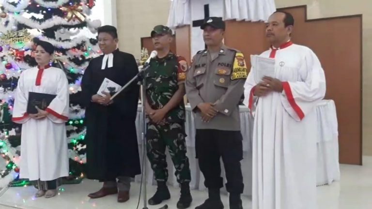 Berikan Rasa Aman Babinsa Bersama Bhabinkamtibmas Laksanakan Pengamanan Misa Natal
