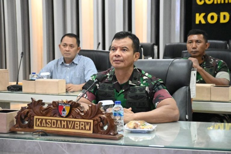 Surabaya, Warta Pertiwi – Kasdam V/Brawijaya Brigjen TNI Zainul Bahar, S.H., M.Si mengikuti Rapat Lanjutan Evaluasi Percepatan Pembangunan Kawasan Desa…