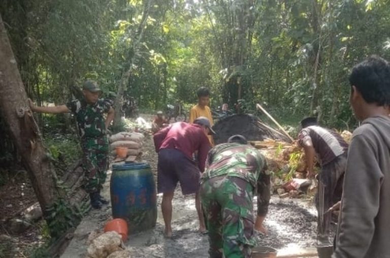 Bentuk Kepedulian, Babinsa Koramil Kokop Bantu Pengecoran Jembatan Antar Kampung