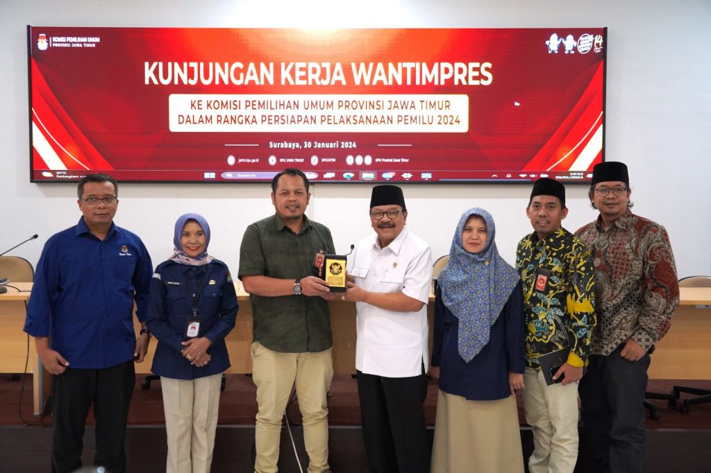 WARTA PERTIWI.COM, SURABAYA – Anggota Dewan Pertimbangan Presiden (Wantimpres) Soekarwo melakukan kunjungan kerja ke Komisi Pemilihan Umum Provinsi Jawa Timur (KPU Jatim) pada Selasa, 30 Januari 2024.
